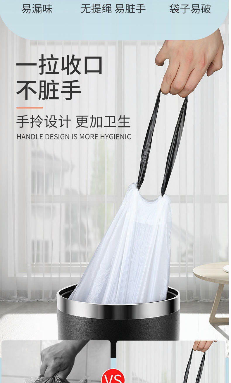 家用手提式厨房自动收口提绳清洁袋塑料袋子加厚白色黑色抽绳垃圾