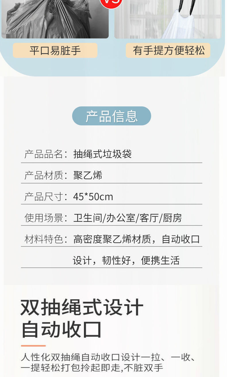 【活动中】加厚垃圾袋抽绳式家用自动收口塑料袋拉绳厨房宿舍好物