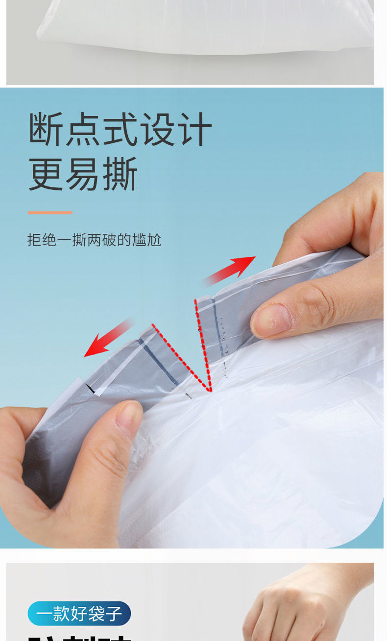 強靭増厚型巾着式分類家庭用平口ゴミ袋破れ防止自動収納袋断点式タイプ