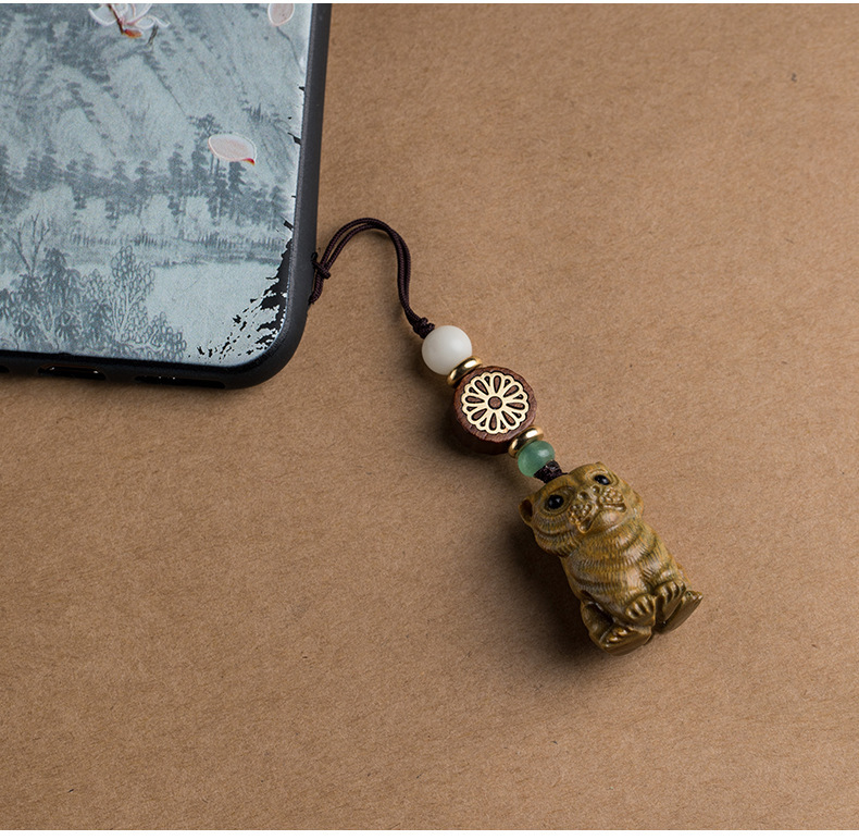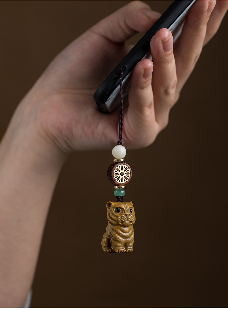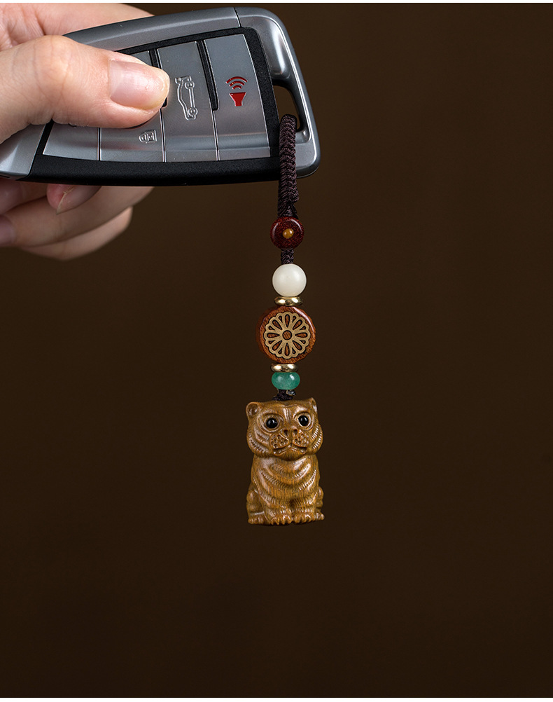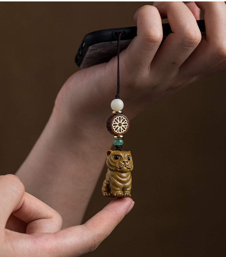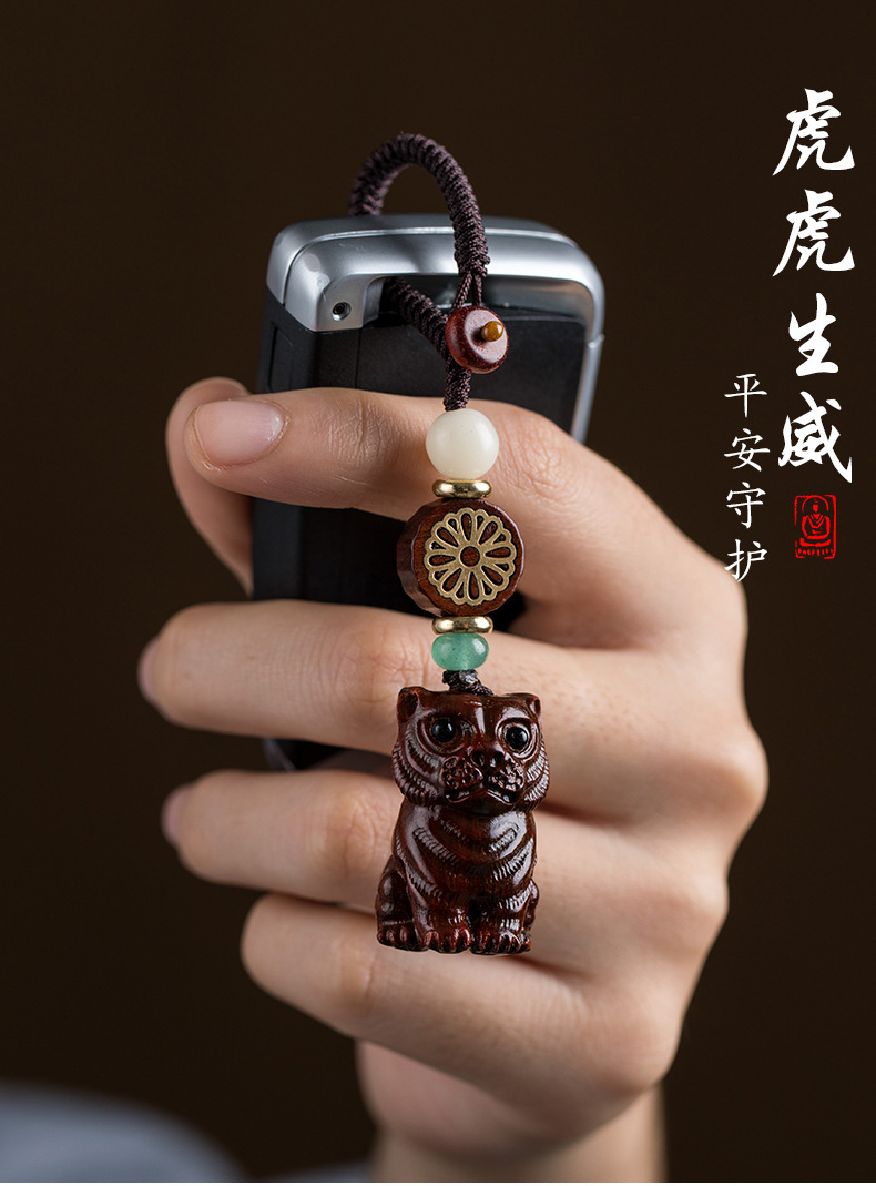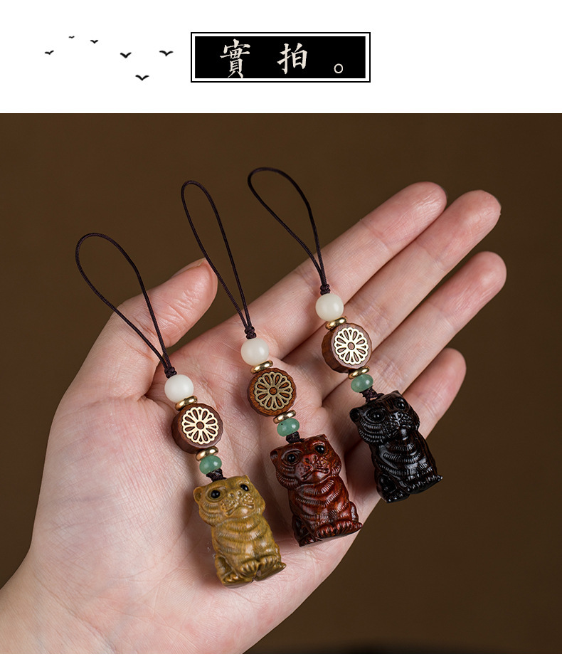 虎年本命年黒檀木生肖虎自動車キーホルダーストラップストラップ男女子プレゼント