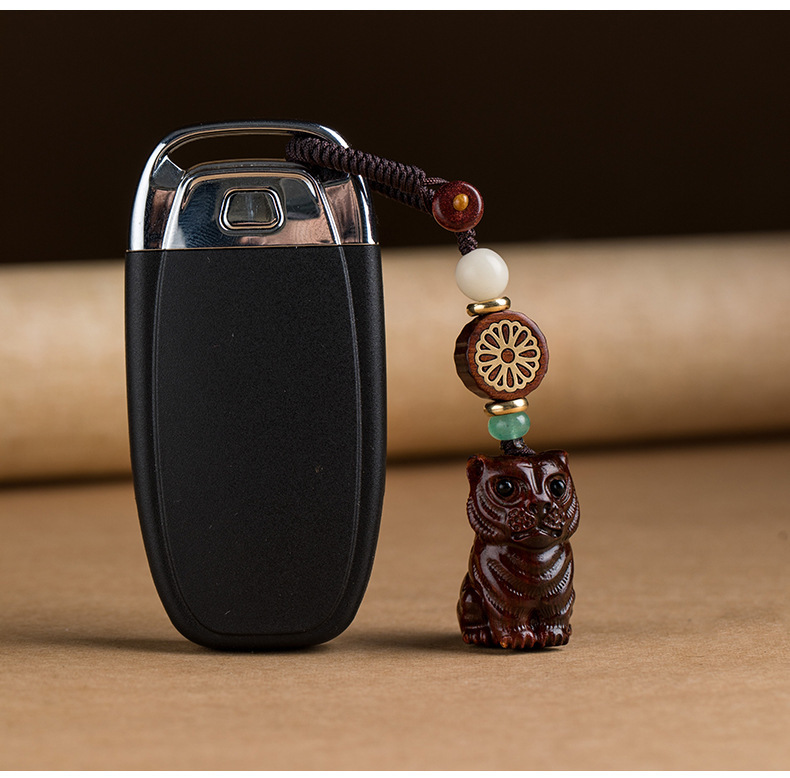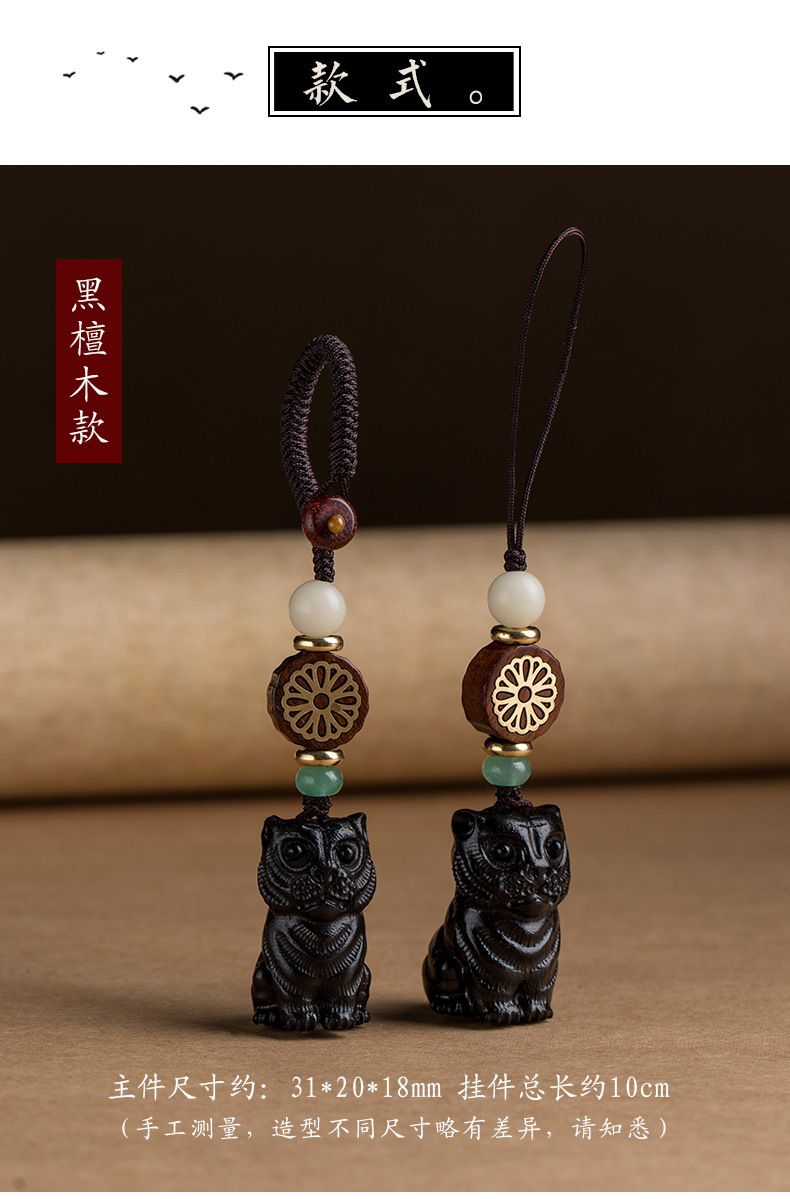 元夢黒檀木子猫車の鍵ストラップ携帯チェーンバッグ掛けキーホルダー男プレゼント