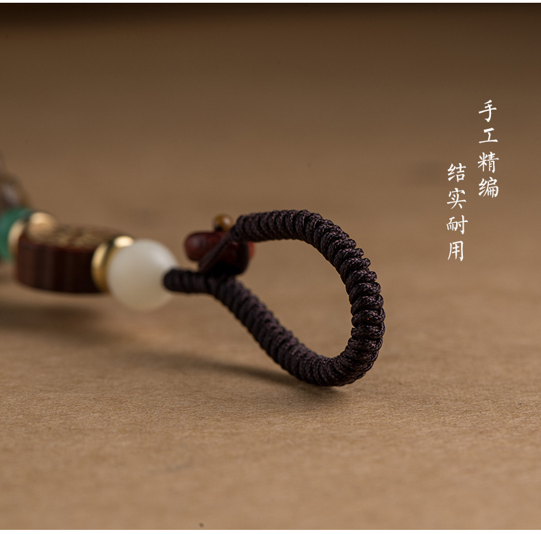檀木転銭福袋自動車キーホルダー男女創意六字真言銭袋鍵掛けストラップ