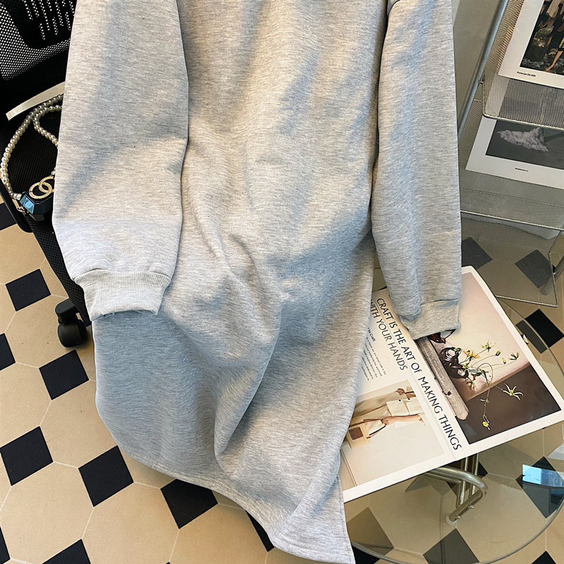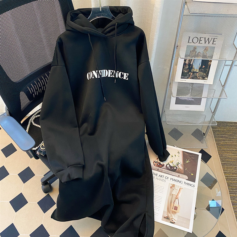 连帽卫衣裙女遮屁股爆款宽松秋冬加绒加厚开叉连衣裙大码套头上衣