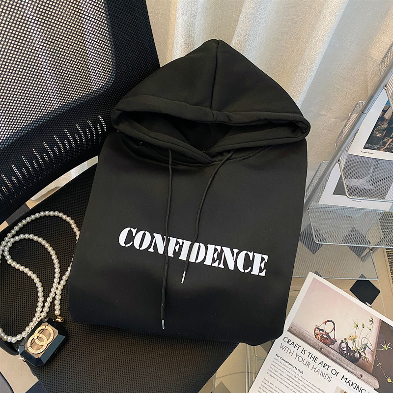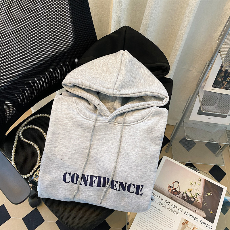 韓国のchi秋冬シンプルで怠惰な風のひもと帽子の長い袖が開いています。