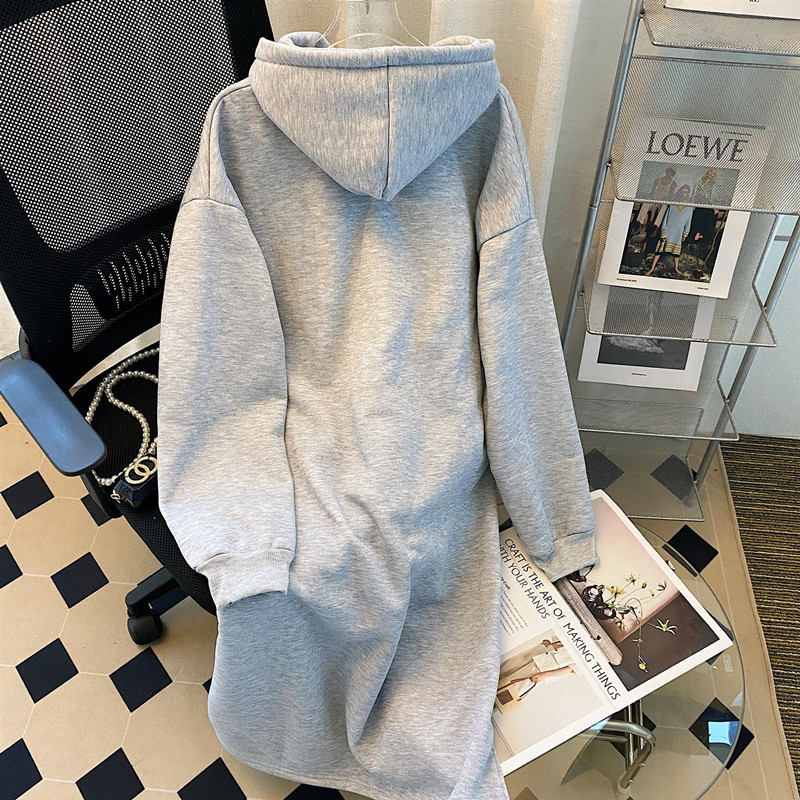 帽子付きのパーカーのスカートの女性の秋冬のベルベットの厚いサイズはゆったりしていて、怠惰な風が見えます。