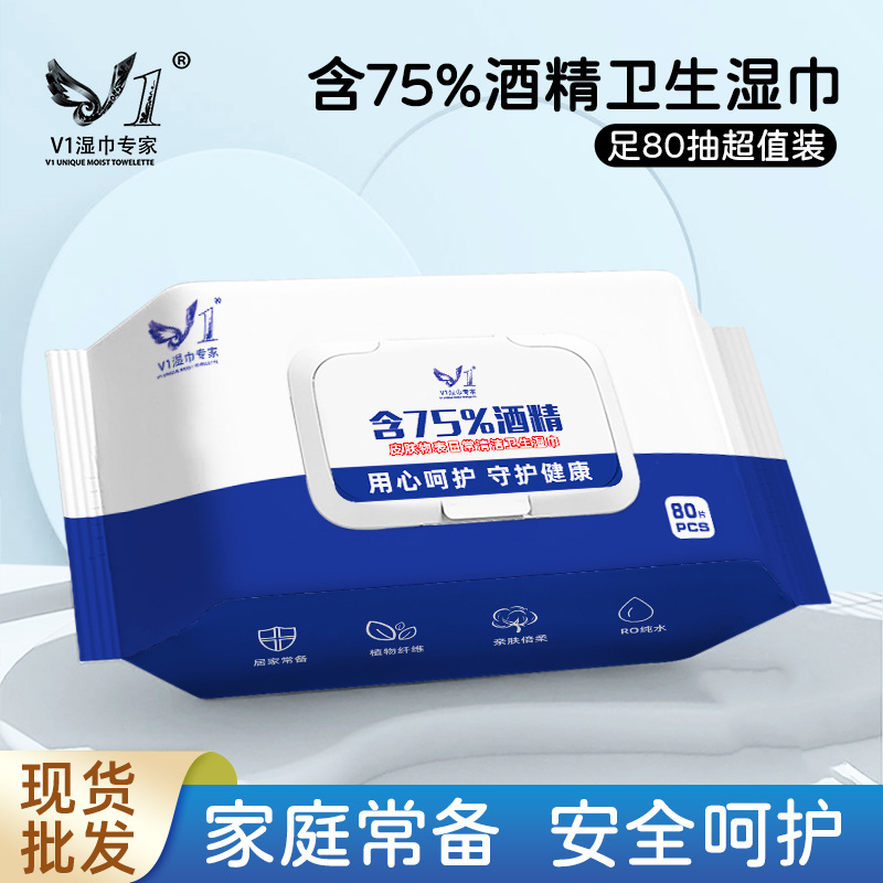 工場卸売使い捨て80枚入りウェットティッシュ75%アルコールウェットティッシュ大容量クリーニング除菌アルコールウェットティッシュ
