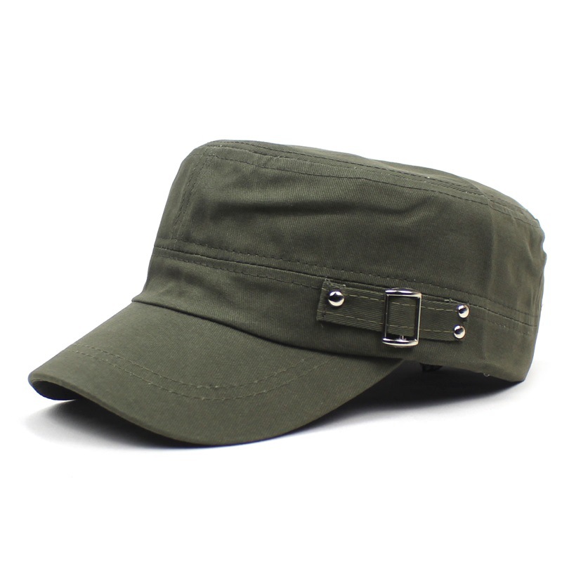 春夏男性軍帽純色綿質平頂野球帽子サイドボタンアヒル舌帽日焼け止め運動帽子