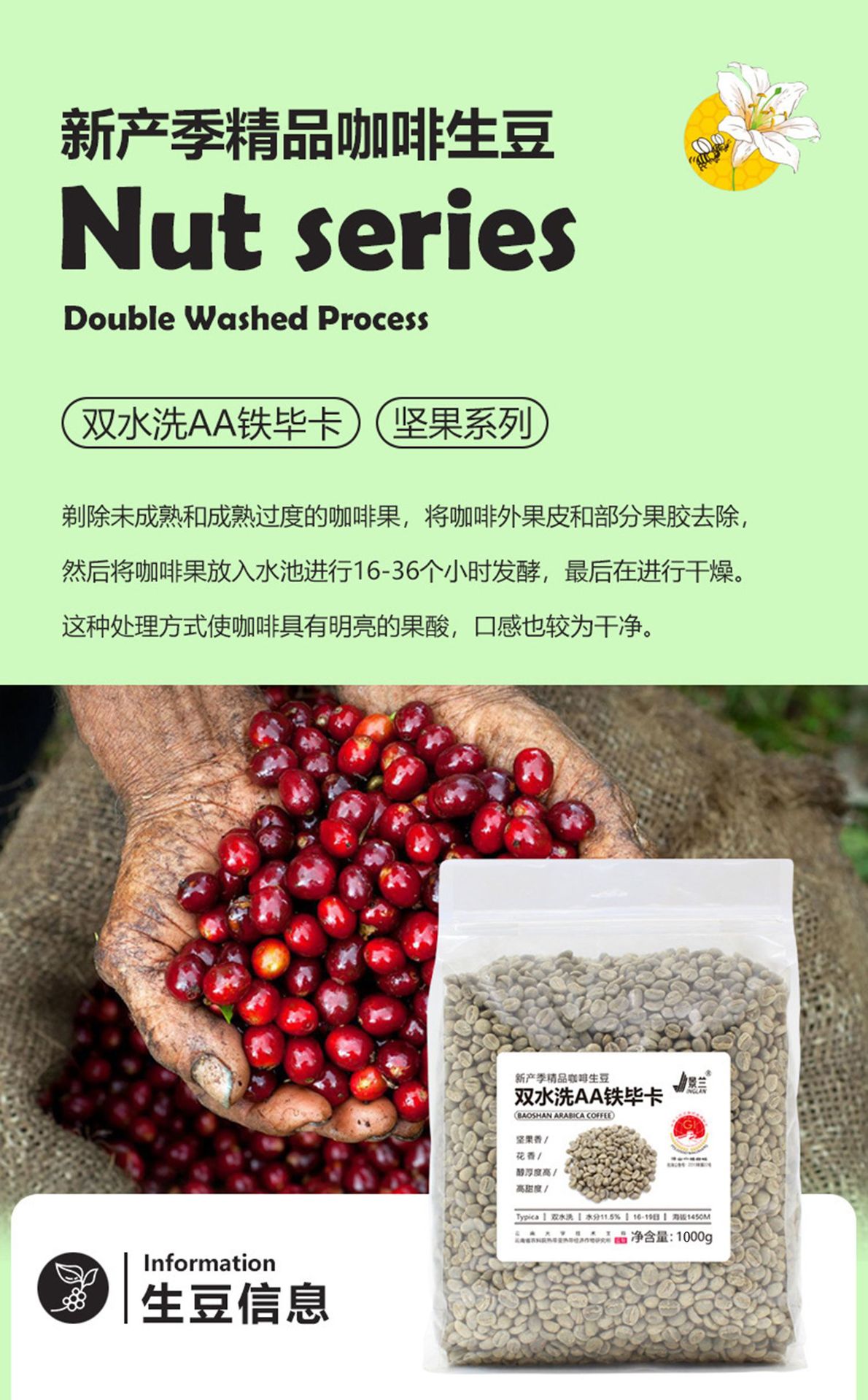 金慶高地雲南コーヒー豆コーヒー生豆小粒グリーンコーヒー豆生コーヒー豆メーカー卸売