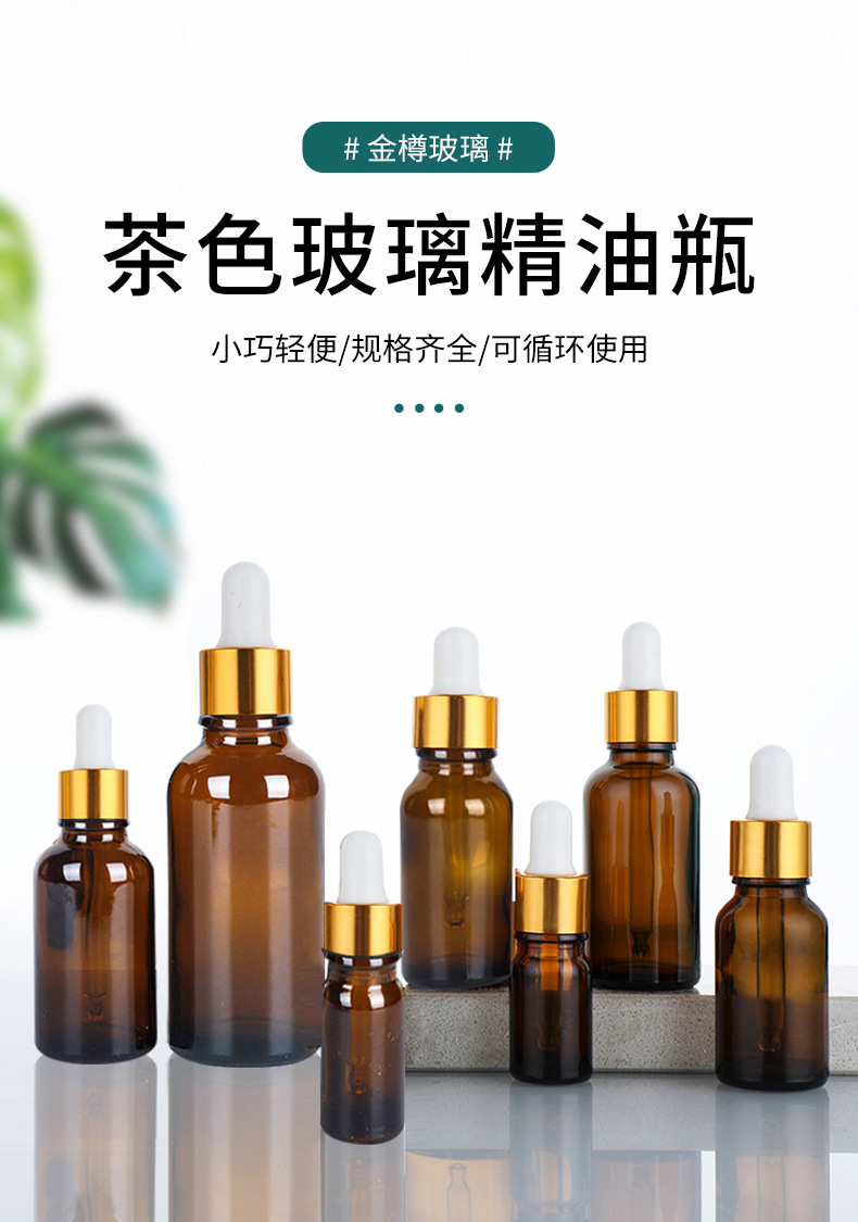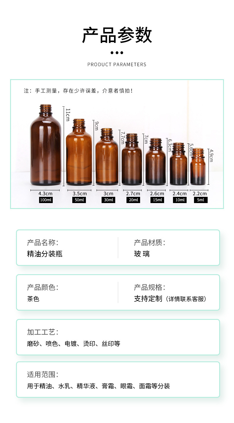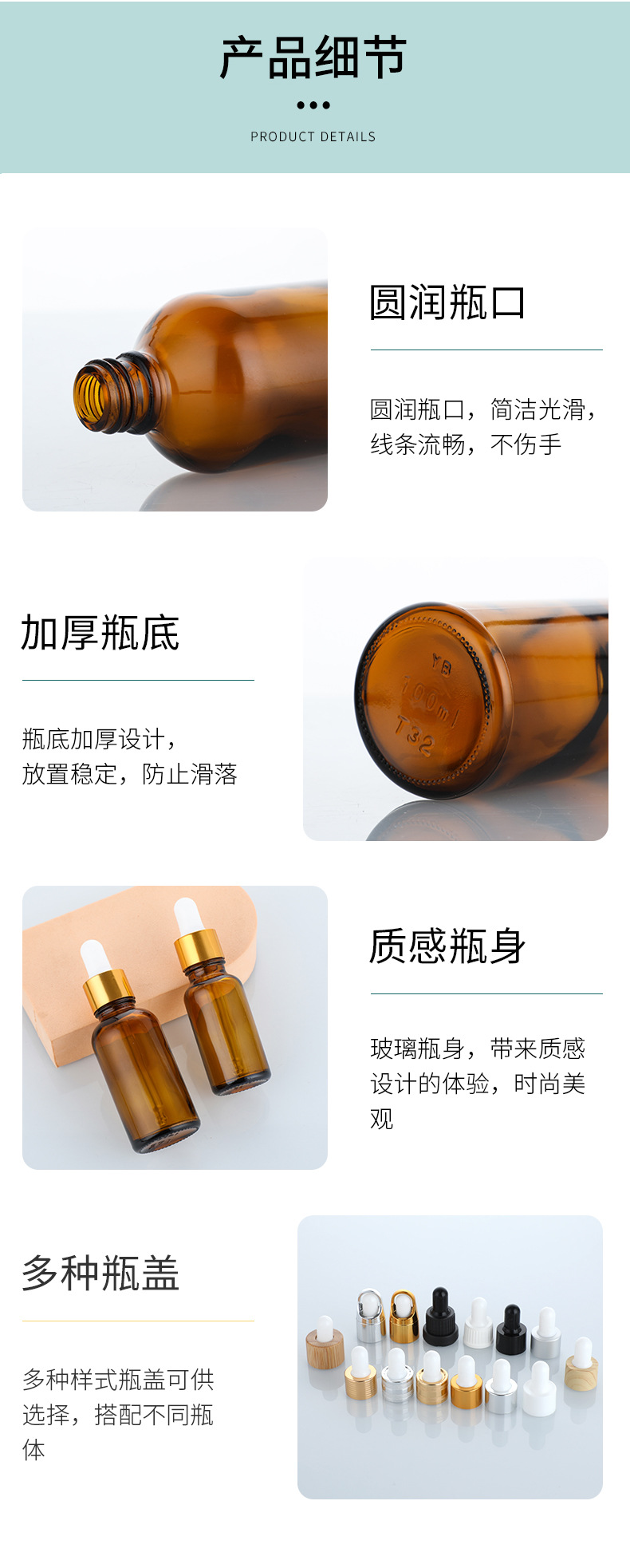 茶色のスポイトエッセンシャルオイルボトル避光ガラスエッセンシャルスキンケア製品分注ボトル化粧品液体サンプル空ボトルカスタム