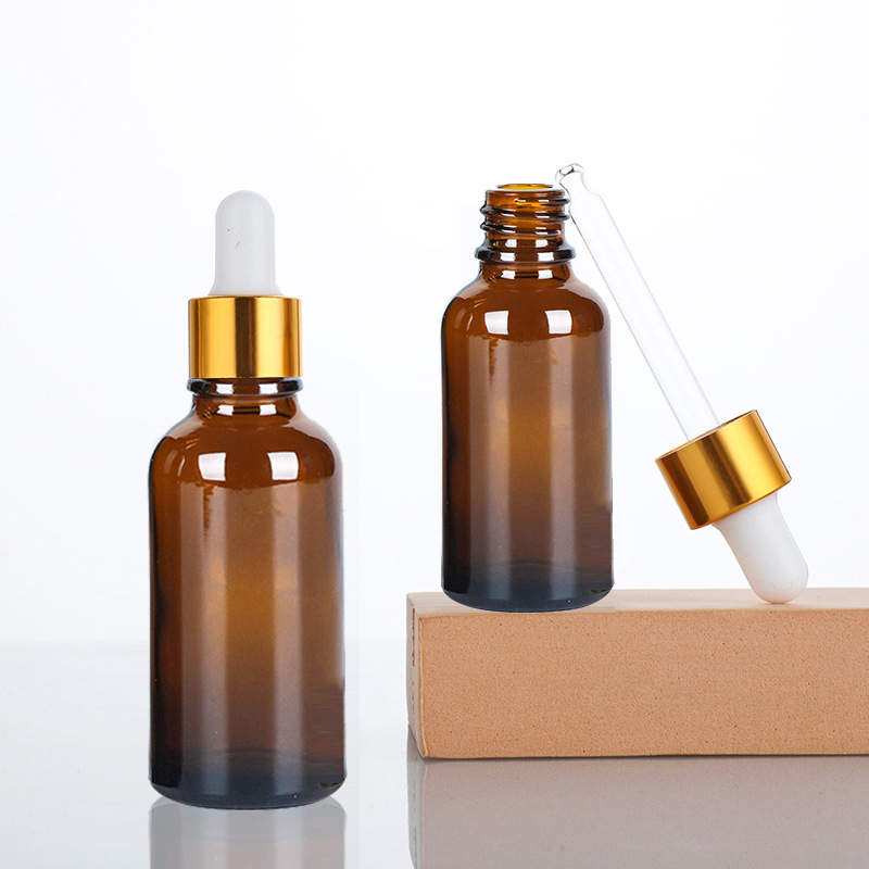 卸売りガラス透明滴管精油瓶ゴム頭精華液瓶カバー肩分注小サンプル瓶圧ポンプ押し空瓶