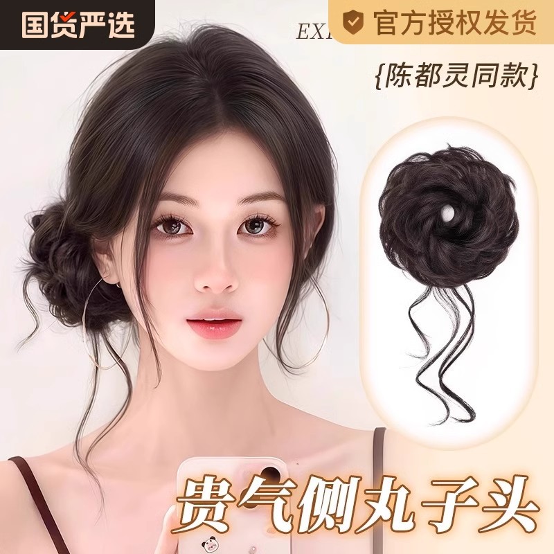 女性用ツイストミートボールヘアウィッグ、模擬ヘアつぼみヘアアーティファクト、後頭部用ふわふわクリップ、高級ウィッグバッグ