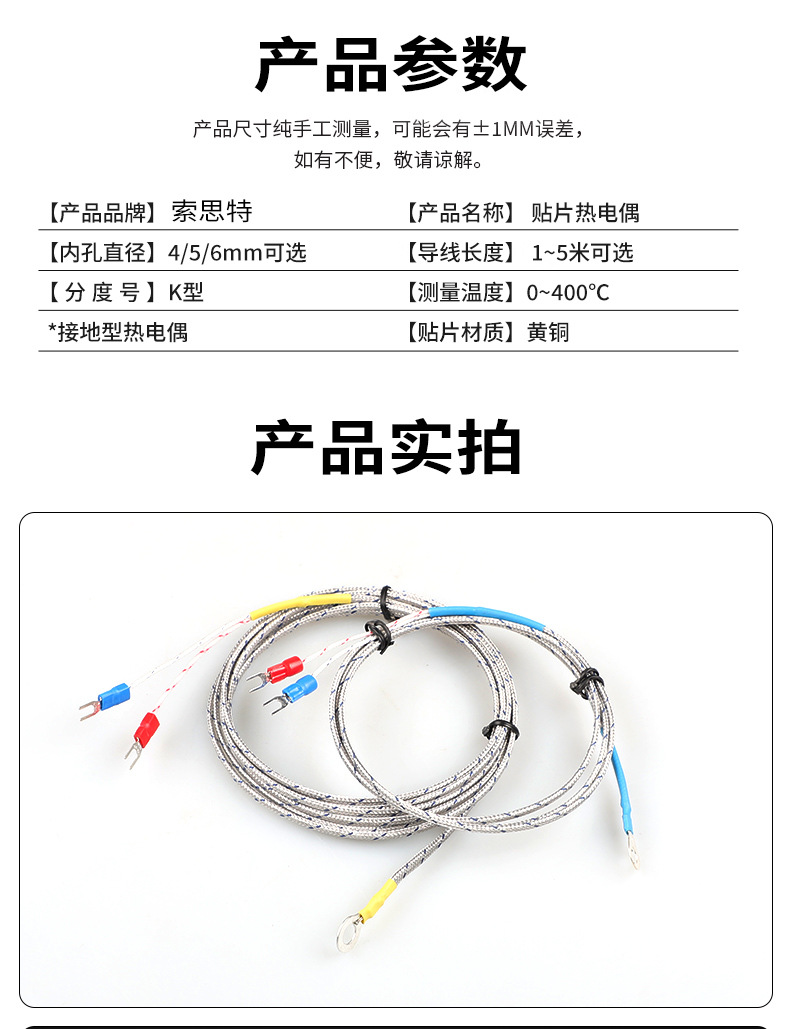 仕様 K 1メートル,K 2メートル,K 5メートル,E 1メートル,E 2メートル,PT100 1m,Pt100 2メートル,Pt100 3メートル,丸穴は4mmか6mmが必要です。デフォルトの丸穴は5mmです。