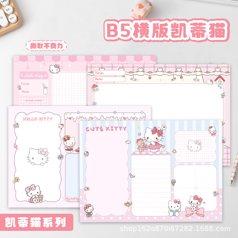 B 5は紙の本の横版のハローキティのかわいい少女の心のノートを撮影します。