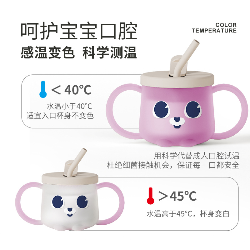 123歳以上の赤ちゃんがボトルの飲み方を学ぶための子供用温度感知ミルクカップ、目盛り付き直飲みストロー付きウォーターカップ、落下防止