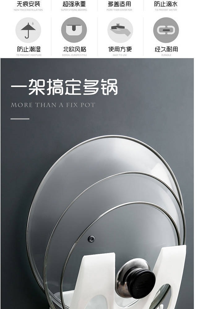 吸盤式鍋蓋置き器穴なし壁掛け台所棚多機能メニューホルダー強力鍋蓋棚