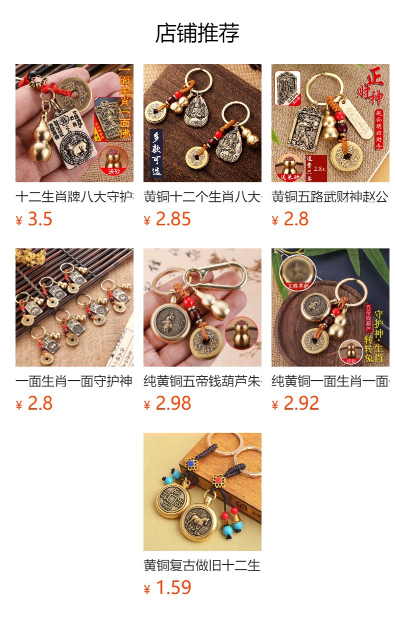 純真鍮製五帝銭、ひょうたん、貔貅ペンダント、12支干支回転式マネーカーキーホルダー、干支ペンダント卸売