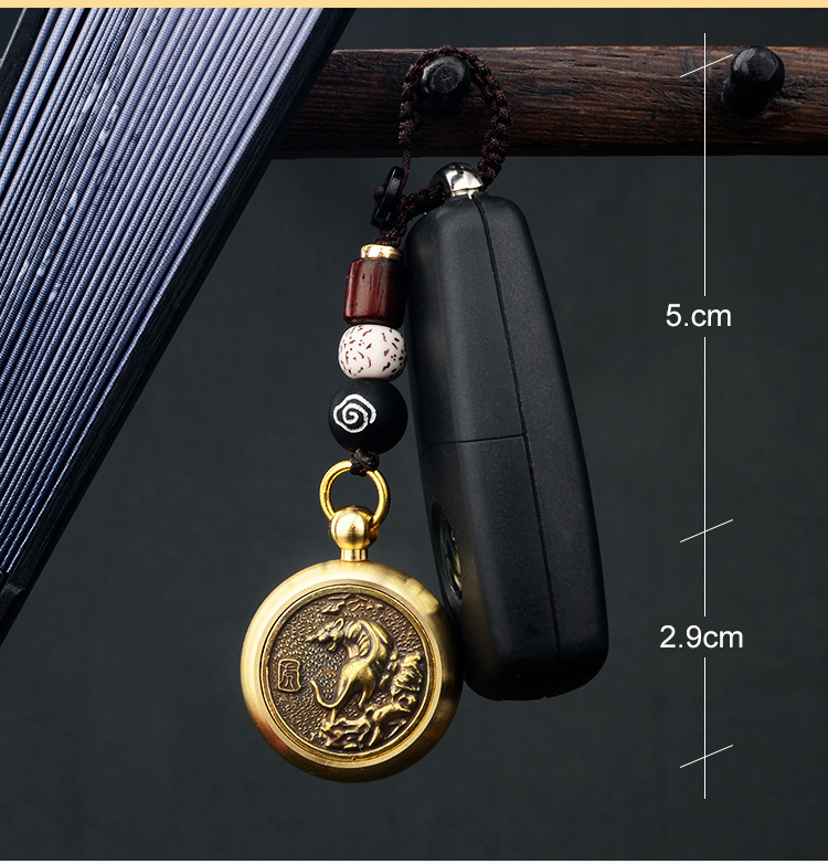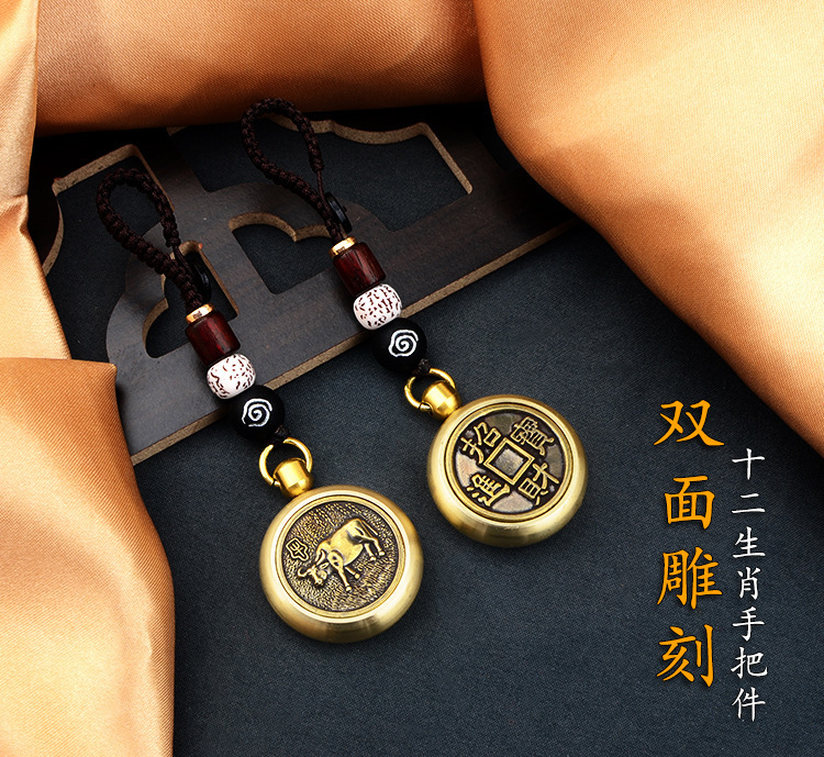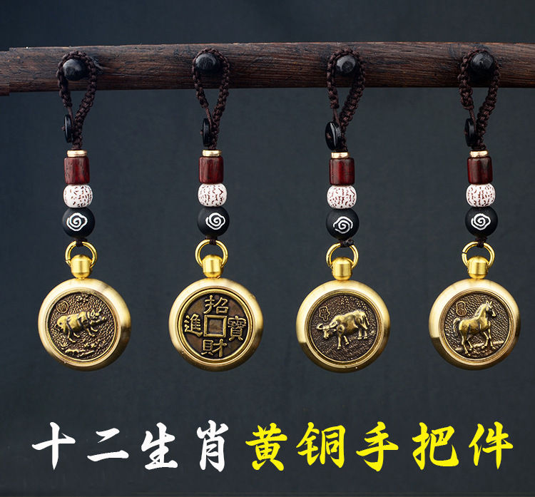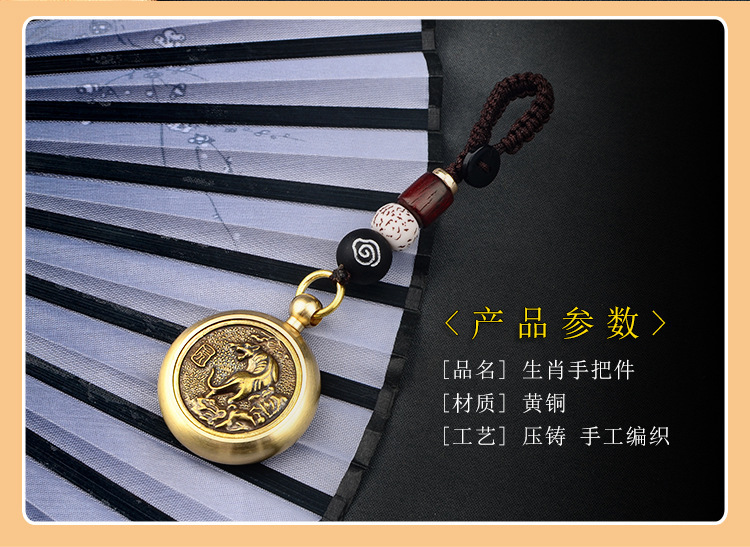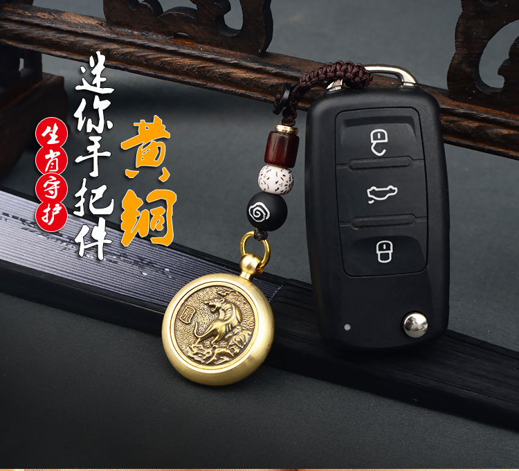真鍮十二支回転式ハンドピース、手編み祥雲紐、車のキーホルダー、男性用装飾品卸売