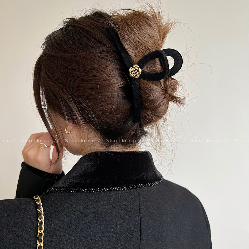 高级感のあるフランス式の黒い大きな蝶結びのヘアピンの女性の高级感のあるヘアピンの髪飾りの後頭部のスプリングクリップ