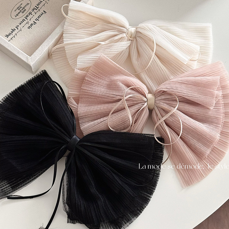 韓国風レトロ水玉蝶結びヘアクリップ 高級感シフォンヘアピン 女性用 後頭部ヘアクリップ 秋冬ヘアアクセサリー