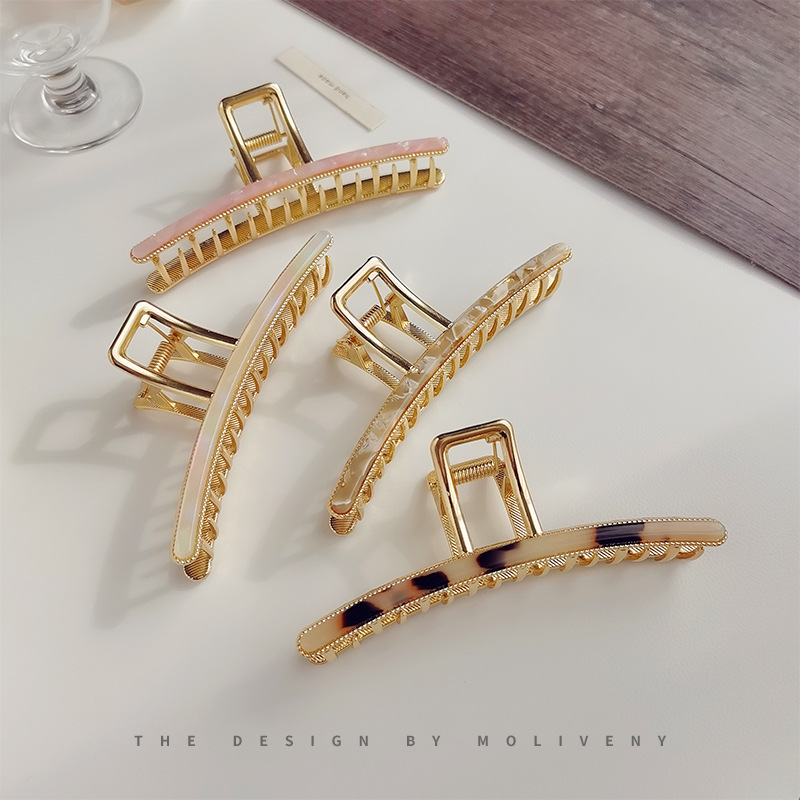 酢酸の扇形の金のマークのヘアピンはシンプルで、質感のクリップは日常的にサメのクリップの髪飾りの新型です。