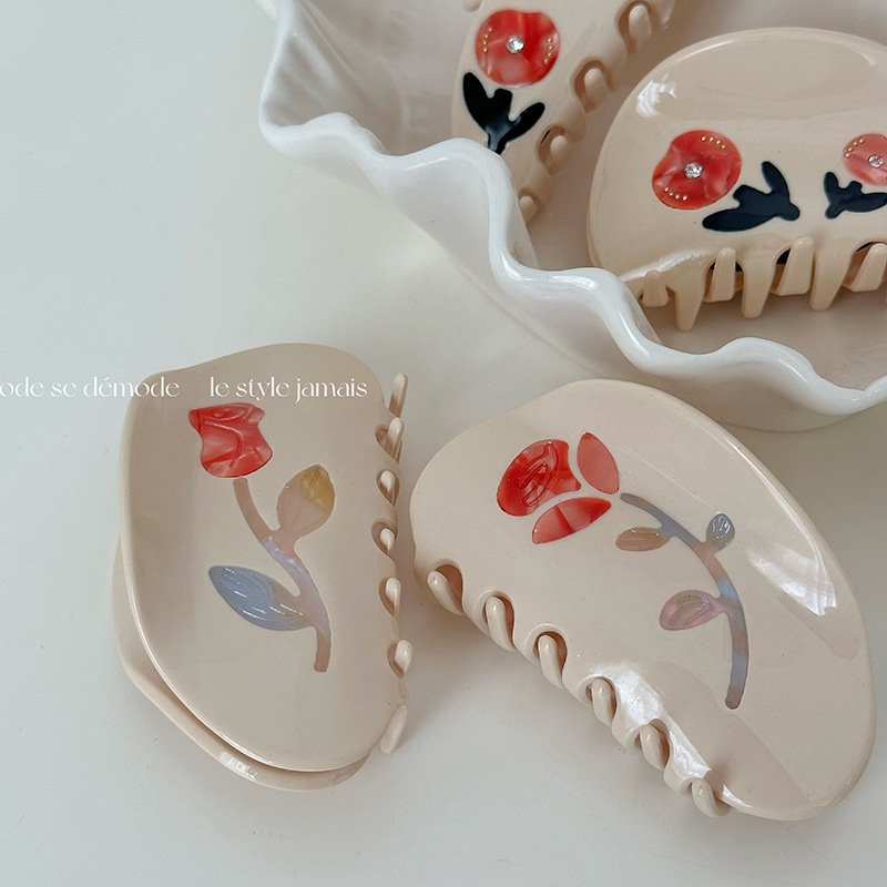 シンプルな組み合わせの酢酸の花の色の1字は女性の中号のサメを挟んで気質の髪を挟みます。