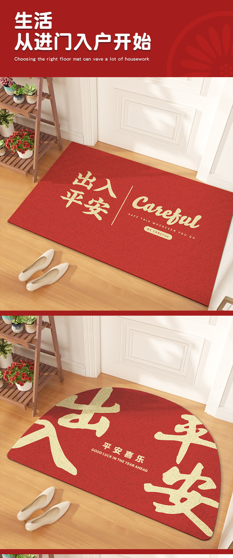 Dajiang Ping An Xile 赤シルクサークルフロアマット玄関ドア汚れ防止玄関ドア除塵 PVC 滑り止めフットマット