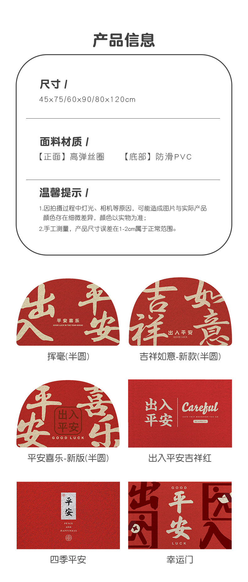 カラー 四季平安,ラッキーゲート,揮発 (半円),吉祥如意-新型 (半円),平安喜楽-新版 (半円)