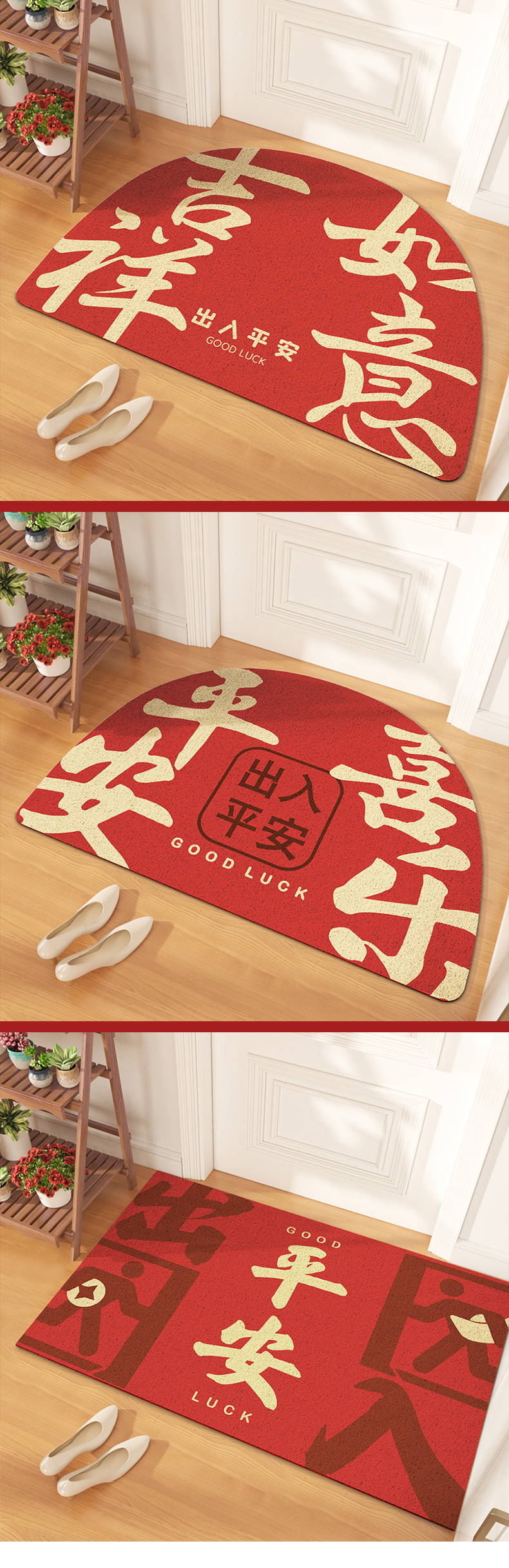 大江新中式马年入户门地垫新年家用红色丝圈除尘耐脏防滑玄关脚垫