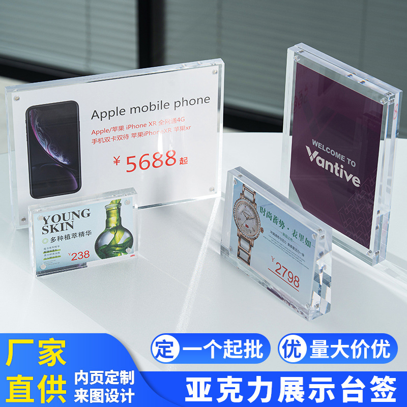 アクリル価格ブランド斜面強磁気ラベル家具商品価格ブランド透明水晶フォトフレーム展示台