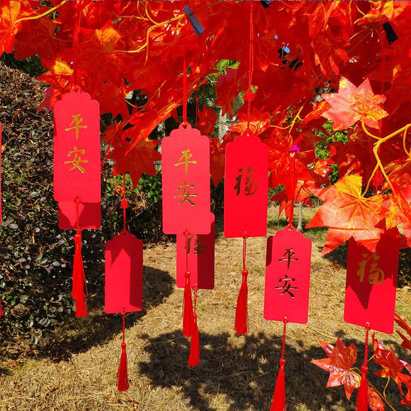 赤い祈りの札の紙はカードの木の心の願いを掛けます。
