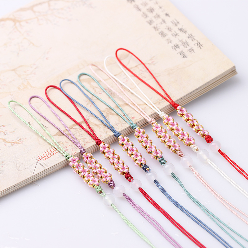 桃の花の結び目のキーロープdiy中国風のブックマークの携帯電話のチェーンの部品を包んで卸売りします。