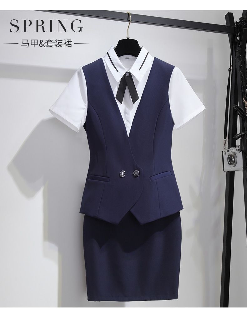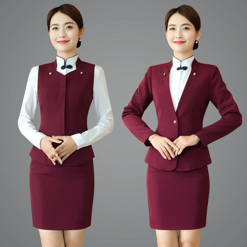 職業馬甲スーツ女性気質正装ホテルフロント中国式茶楼サービスマン工装不動産作業服女性