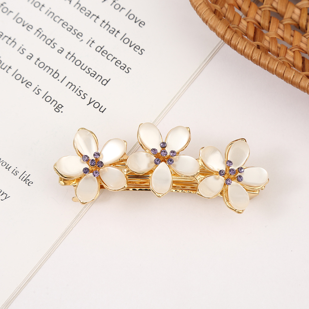 韓国風の新鮮なキャッツアイヘアピン、新しい花のハーフタイヘアスプリングクリップ、女性の後頭部ヘアピン