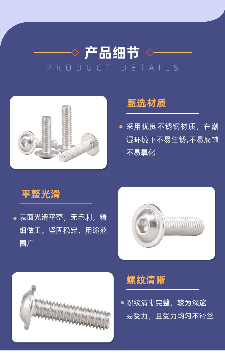 製品仕様 M3*4,M3 * 5,M3 * 6,M3 * 8,M3 * 10,M3 * 12,M3 * 14,M3 * 16,M3 * 18,M3 * 20,M3*22,M3 * 25,M3*30,M4 * 5,M4 * 6,M4 * 8,M4 * 10,M4 * 12,M4 * 14,M4 * 16,M4 * 18,M4 * 20,M4 * 25,M4 * 30,M4*35,M4 * 40,M4*45,M4*50,M5*6,M5*8,M5*10,M5*12,M 5*14,M 5*16,M5*18,M 5*20,M5*25,M 5*30,M5*35,M 5*40,M 5*45,M 5*50,M5*55,M5*60,M6*8,M 6*10,M 6*12,M 6*14,M 6*16,M 6*18,M 6*20,M 6*25,M6*30,M 6*35,M 6*40,M 6*45,M 6*50,M 6*55,M 6*60,M8*10,M8*12,M 8*14,M 8*16,M8*18,M 8*20,M 8*25,M 8*28,M 8*30,M 8*35,M 8*40,M 8*45,M 8*50,M 8*55,M 8*60