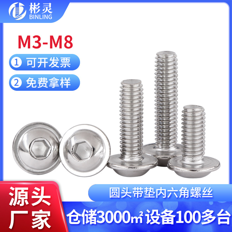 304ステンレス丸頭パッド付き六角ねじ平頭半円頭パッド付きワイヤーボルトm3m4 m 5m 6