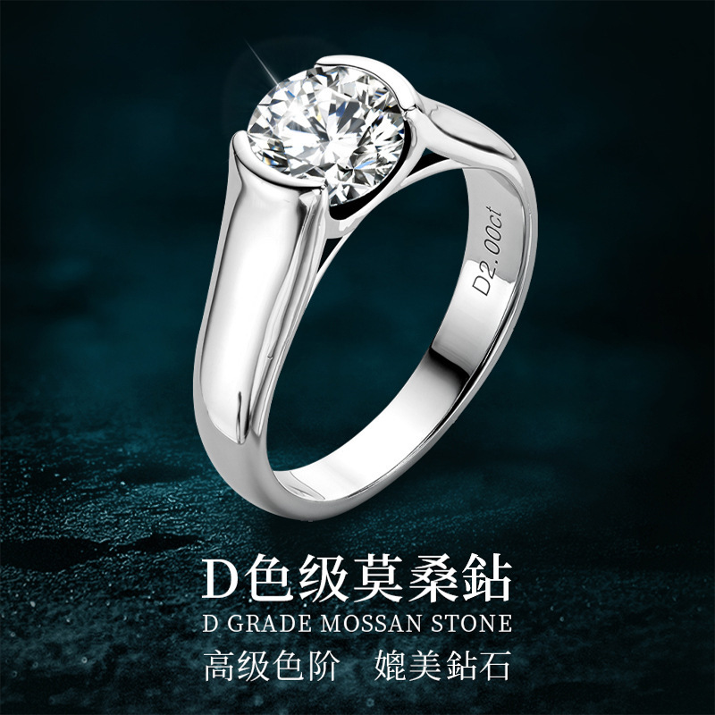 外贸简约气质女戒2克拉D色莫桑石s925银镀18k金戒指跨境现货批发