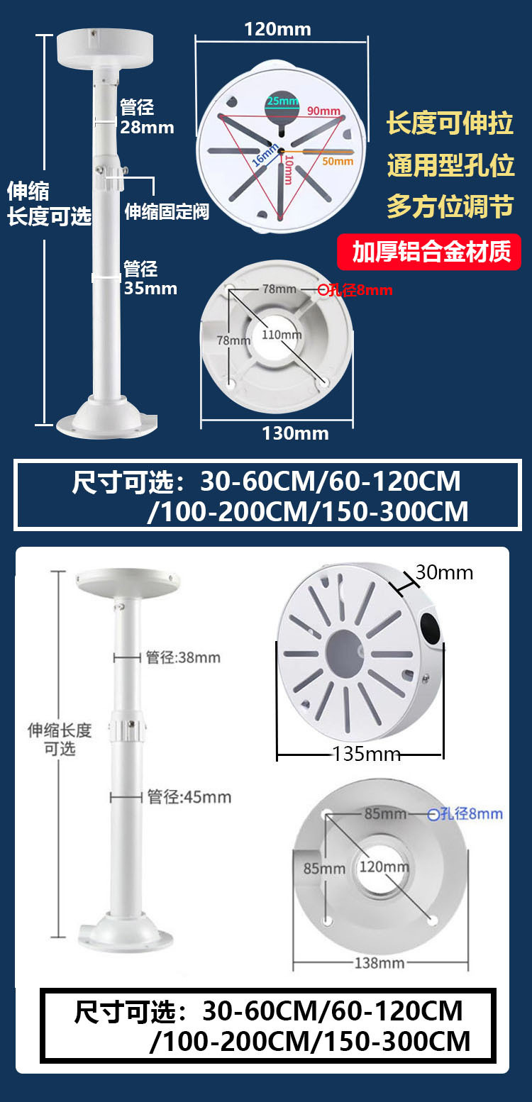 監視銃機ステントアルミニウム合金粗管ユニバーサルジョイント鴨口壁装吊り塀ステントi型l型u型