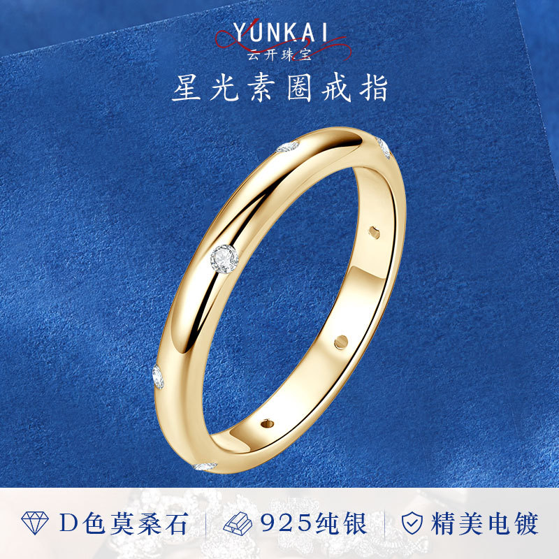 跨境爆款满天星莫桑石戒指女小众高级感微镶s925纯银素戒定制批发