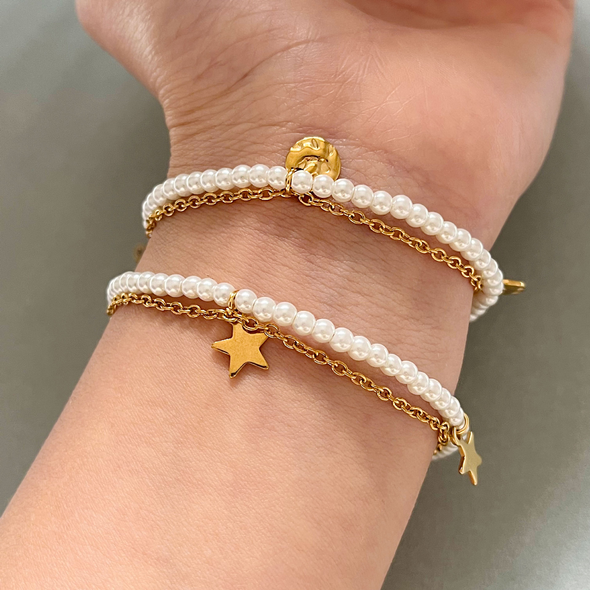 欧米のクロスボーダーのレトロな丸い星の真珠の二重のブレスレットのファッションは簡単です。