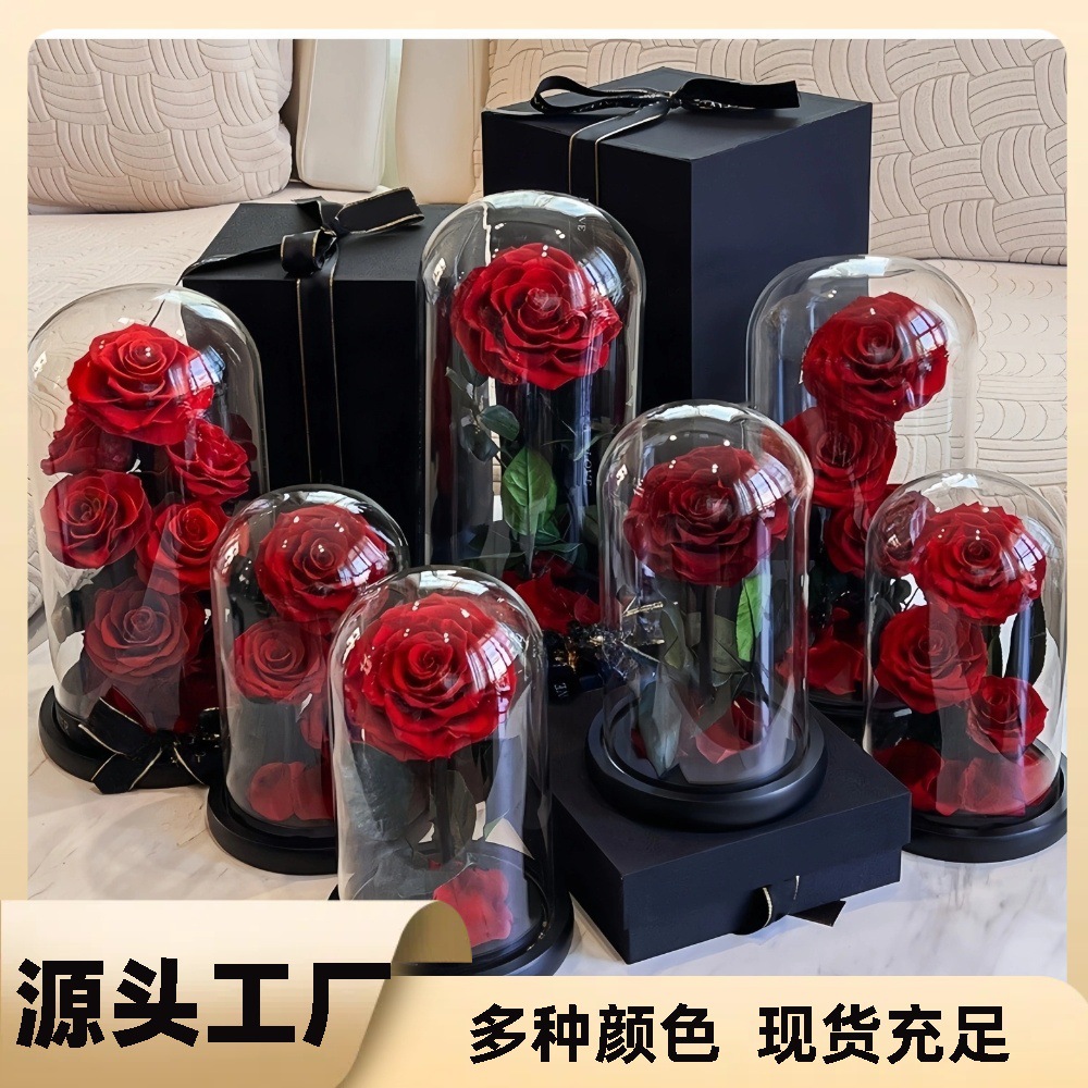 永遠の命の花の礼箱の完成品の置物の小さい王子のバラの贈り物のガラスはバレンタインデーの贈り物の乾花の卸売りを覆います。