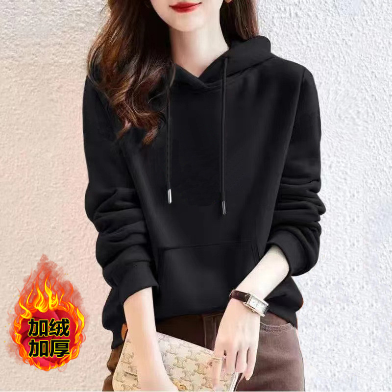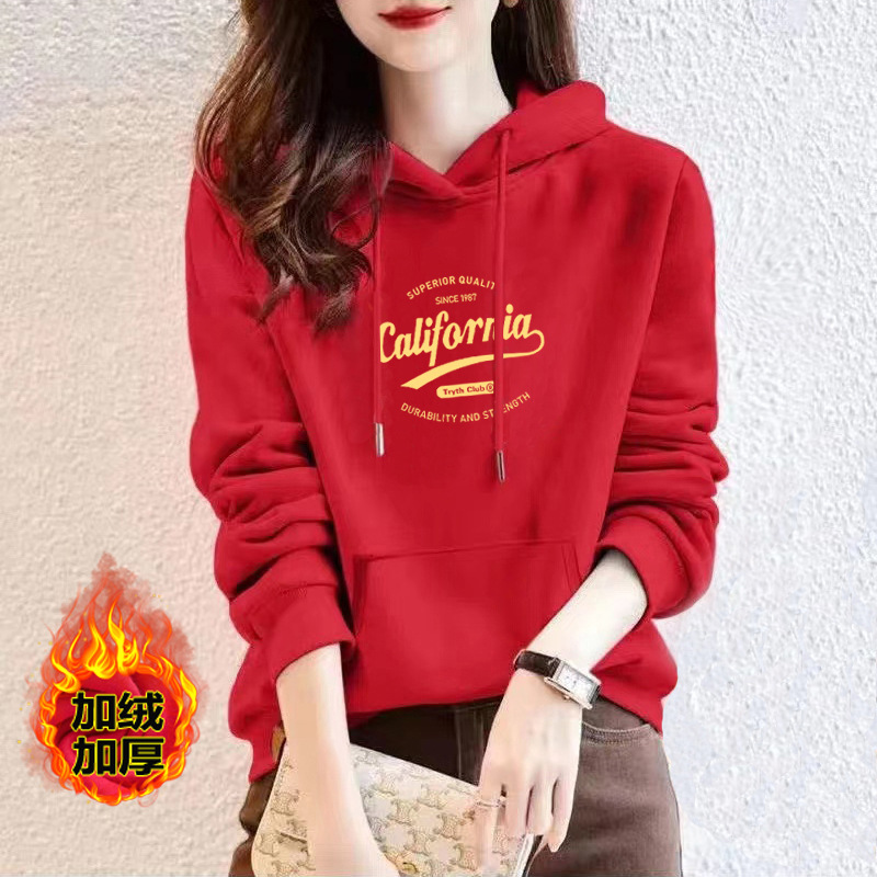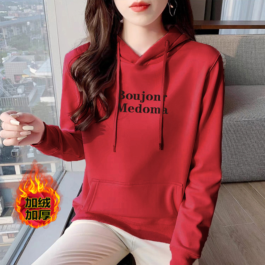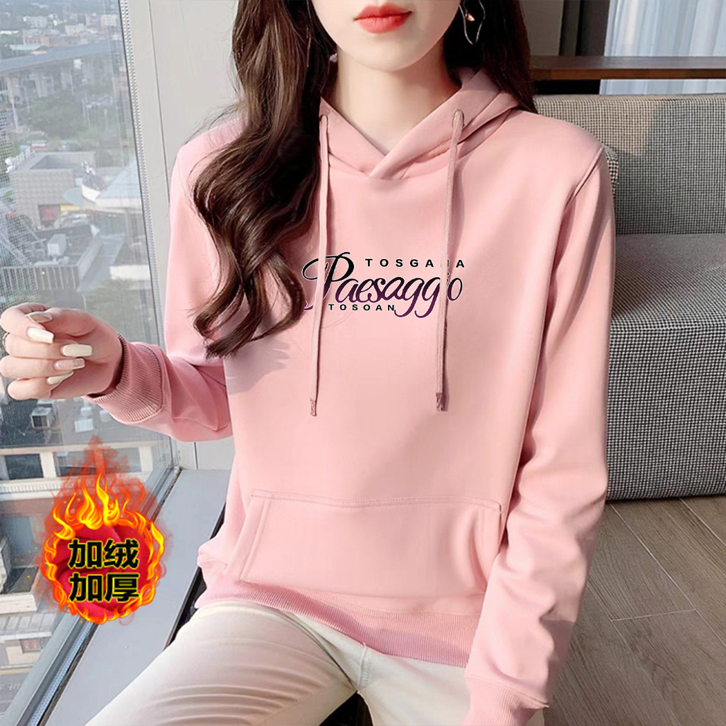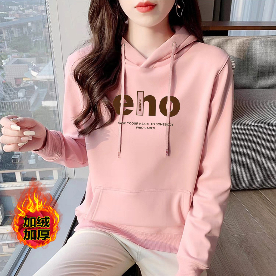 ベルベットのセーターと帽子の綿質の正肩運動がゆるいカジュアルなファッションプリント秋冬コートの多色女性ファッション上着