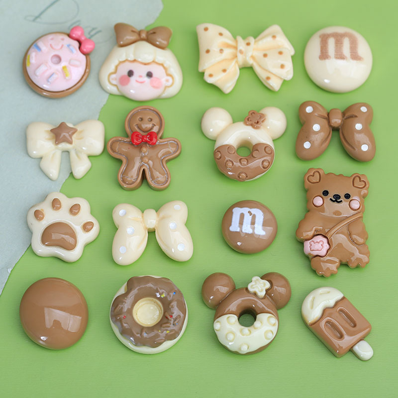 米咖色系混合卡通diy小饰品奶油胶配饰发夹洞洞鞋扣装饰树脂配件