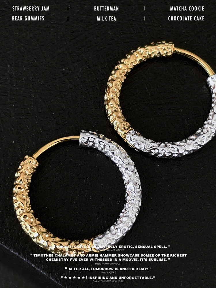新作オリジナル金銀コントラストテクスチャイヤリング レディース イヤリング ファッション 個性派 クール系 ライトラグジュアリー 高級感 イヤーアクセサリー