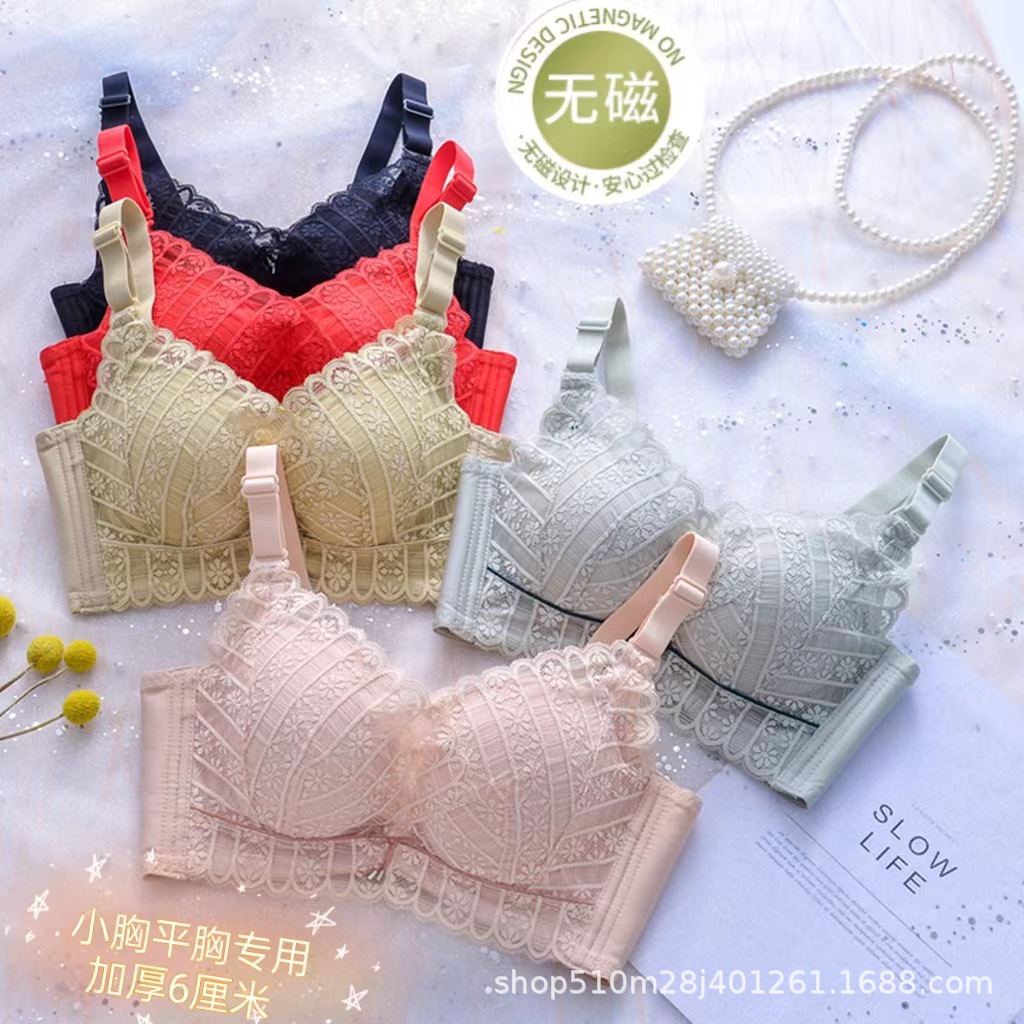 9217項の厚い6cmの小さい胸の平胸は下着の女性の非磁気の無鋼の輪を閉じて副乳の調整型の文のブラジャーを収めます。