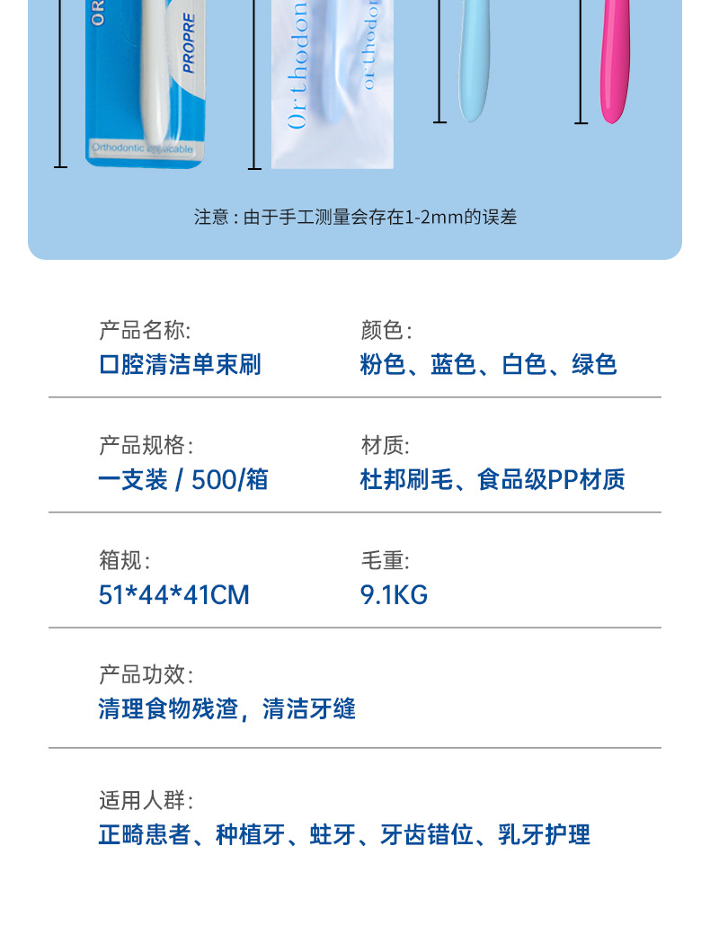 单束孔正畸牙刷矫正器牙齿牙套清洁牙刷高密尖头集束小头单孔牙刷