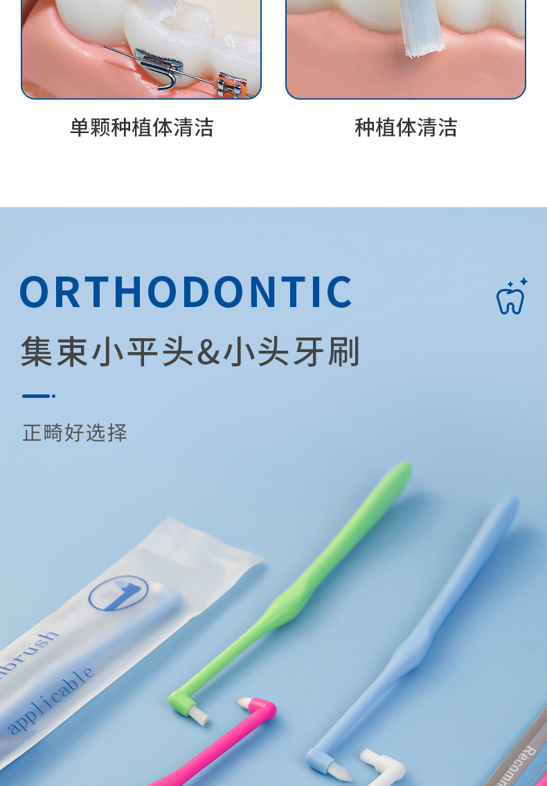 歯列矯正用歯ブラシ、歯列矯正器具の隙間用歯ブラシ、親知らず矯正用柔らか毛歯ブラシ、高級ファミリー向け個別包装歯ブラシ