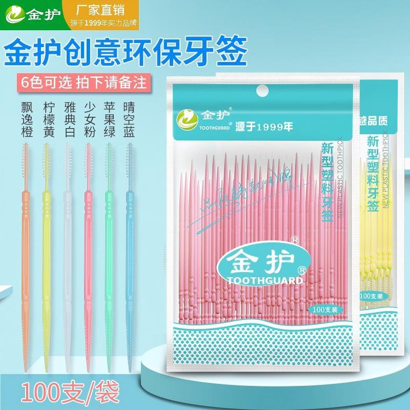 金保護プラスチック爪楊枝100本袋入り魚骨双頭使い捨て家庭用ホテル歯磨きメーカー卸売り