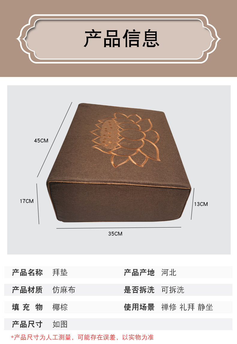 ココナツブラウン禅修クッション家庭用折り畳み金剛ひざまずいて瞑想マット仏堂角形蓮刺繍は分解して洗うことができる