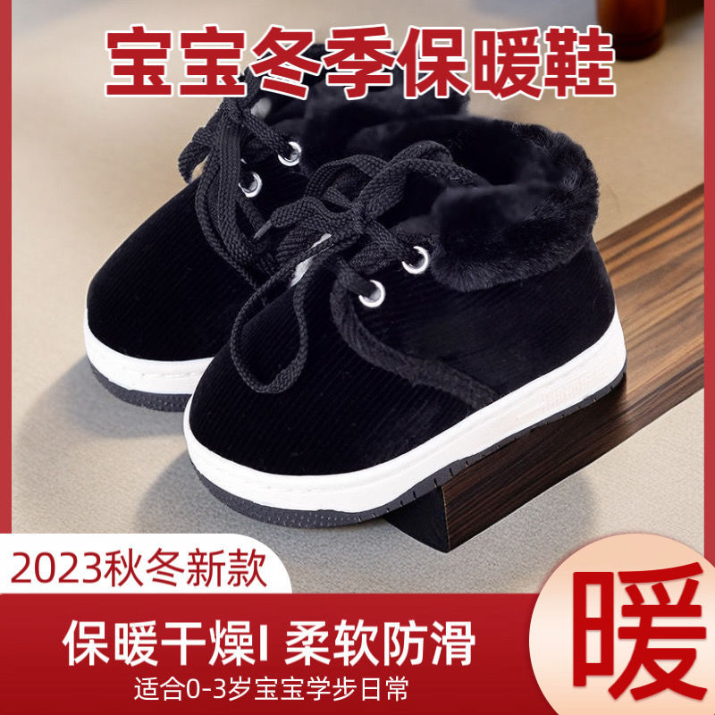 新款宝宝手工棉鞋冬季加绒加厚保暖学步鞋1-2-3岁男女儿童鞋防滑