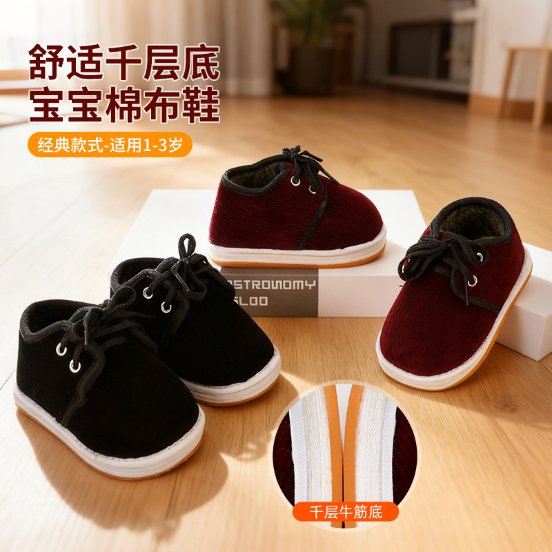 传统宝宝手工棉鞋 千层底棉花加厚保暖吸汗男女1-3岁儿童布底鞋